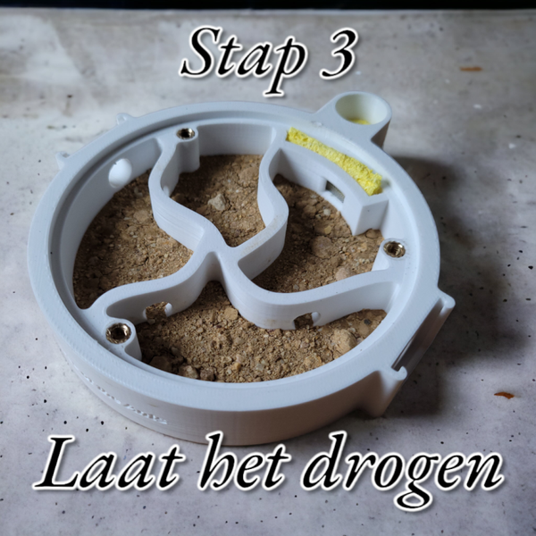 Stap 3 - laten drogen, als het droog is zal het keihard zijn, ze kunnen en willen er niet in graven.
